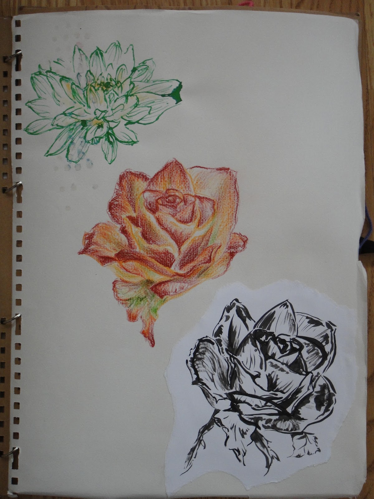 - Roughly sketched rose in dry watercolour crayon, basically a quick exploration of colour